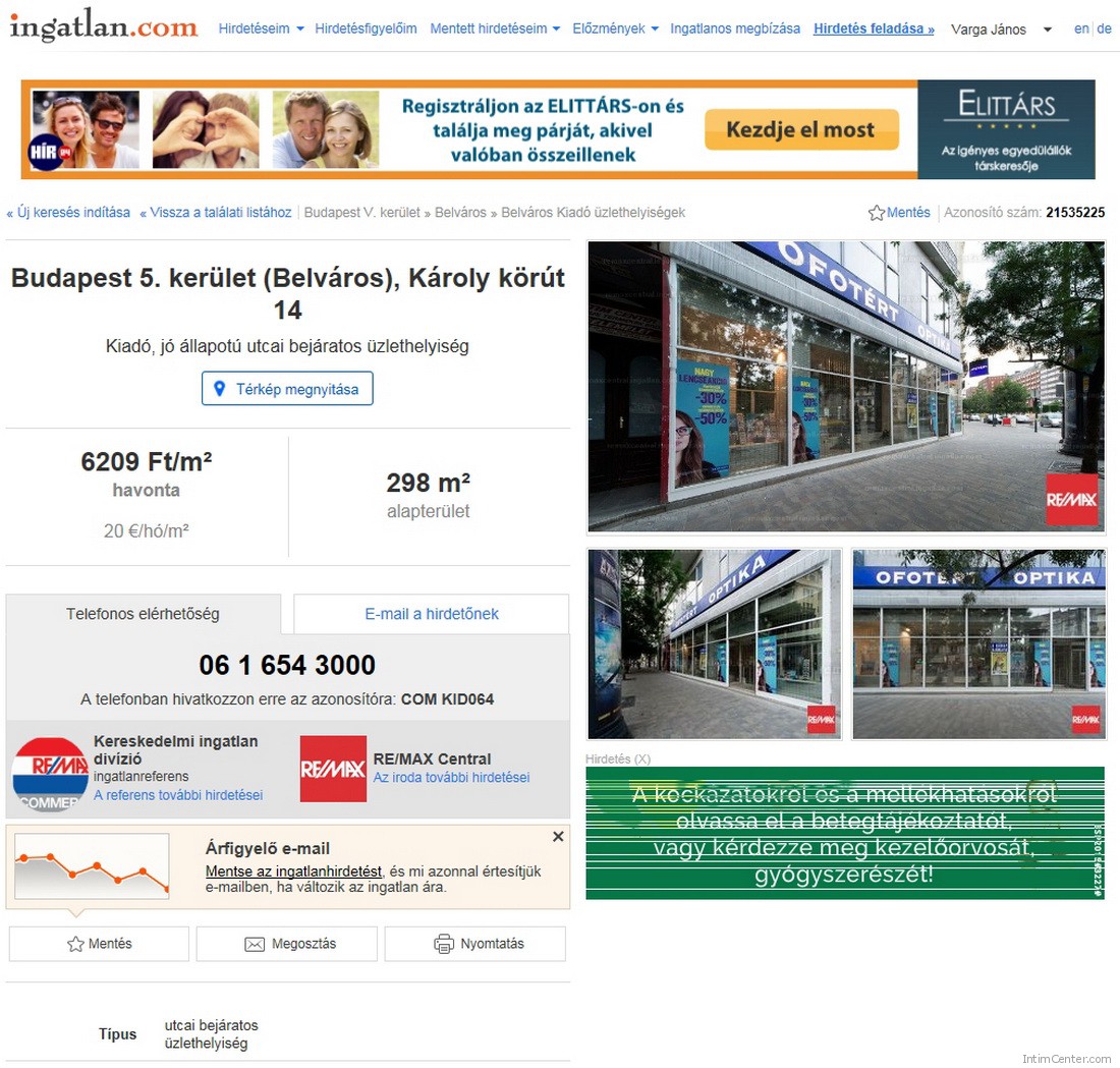 Az Intim Center Sexshop a 1052 Budapest, 5. kerület, Károly krt. 14. sz. alatti épületben a félemelerten található. Nyílt árusítású szexüzlet, és online webshop, internetes webáruház is üzemel a 4 Társ Kft. égisze alatt, már 30 éve, akkoriban így nézett ki az épület. A földszinten a Kék Elefánt üzet már bezért, és régen az Ofotért most a Cream ruhabolt taláható. A Kék elefánt már nem működik, az Ofotért követte pédáját, mert havi két millióért bérbe adó a hirdetés alapján Cream ruhaüzlet lett belőle.