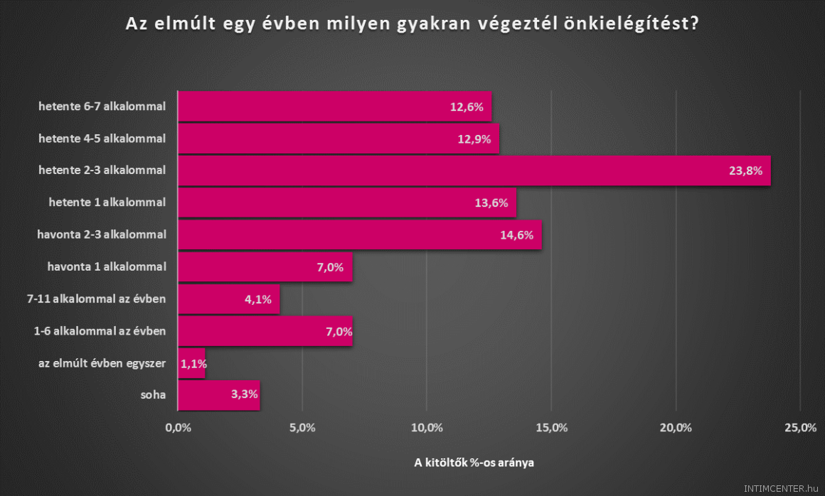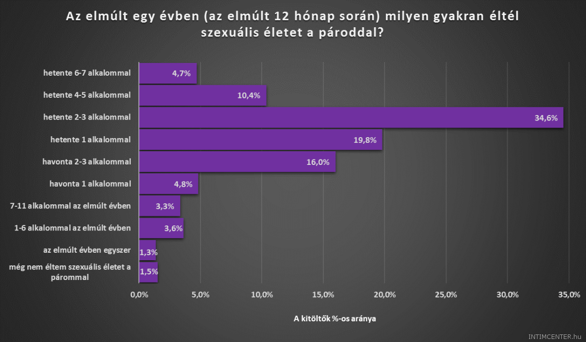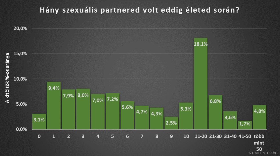 (Az ELTE PPK Pszichológiai Intézetének szexuális élettel kapcsolatos kérdőívét 15703-an töltötték ki végig. Ők 18 és 76 év közöttiek, átlag életkoruk 33 év volt. A legmagasabb iskolai végzettséget tekintve a kitöltők 61,5 százaléka felsőfokú végzettséggel, 31,9 százaléka érettségivel, 3,8 százaléka szakképesítéssel, 2,9 százaléka általános iskolai vagy annál alacsonyabb végzettséggel rendelkezik. A kitöltők 64 százaléka teljes munkaidőben, 10,2 százaléka részmunkaidőben dolgozik, 8,5 százalék alkalmi munkákat vállal, 17,3 százalék pedig nem dolgozik jelenleg. A válaszadók 54,4 százaléka Budapesten, 15,4 százaléka megyeszékhelyen, 21,0 százaléka városban, és 9,2 százaléka községben vagy faluban lakik. A kitöltők 24,6 százaléka egyedülálló, 42,1 százaléka párkapcsolatban él, 4,0 százaléka eljegyzett, 24,6 százaléka házas, 2,8 százaléka elvált, 0,5 százaléka özvegy. A kutatás nem reprezentatív.)